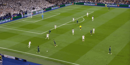 当然了,皇马此役没有找到多少打尼科身侧空间的机会,因为谢尔基内收的幅度很大,但也因此,皇马获得了打击曼城弱侧空间的机会,借助这一点完成了多次提速和推进: